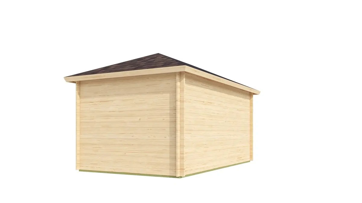 Bygget er konstruert i 44 mm massiv nordisk gran og kombinerer solid kvalitet med et stilrent og moderne uttrykk