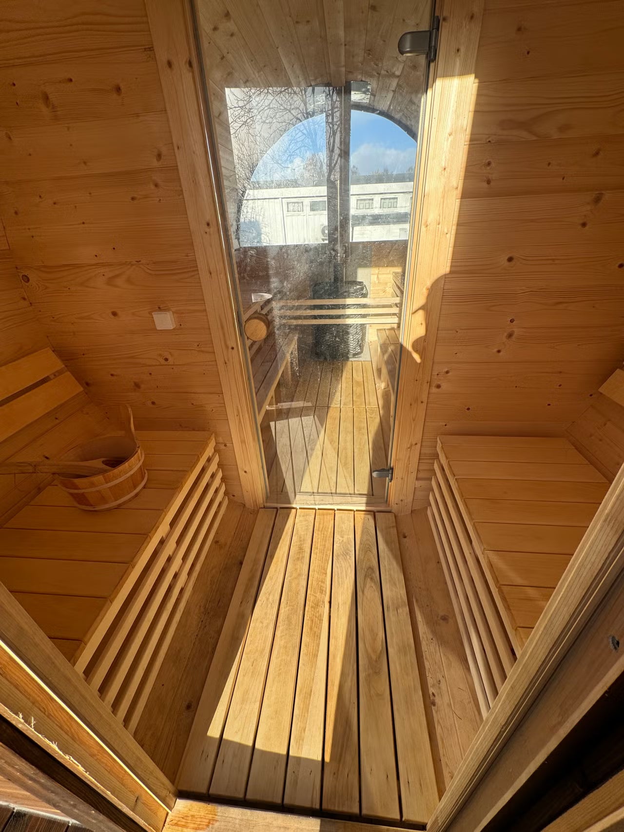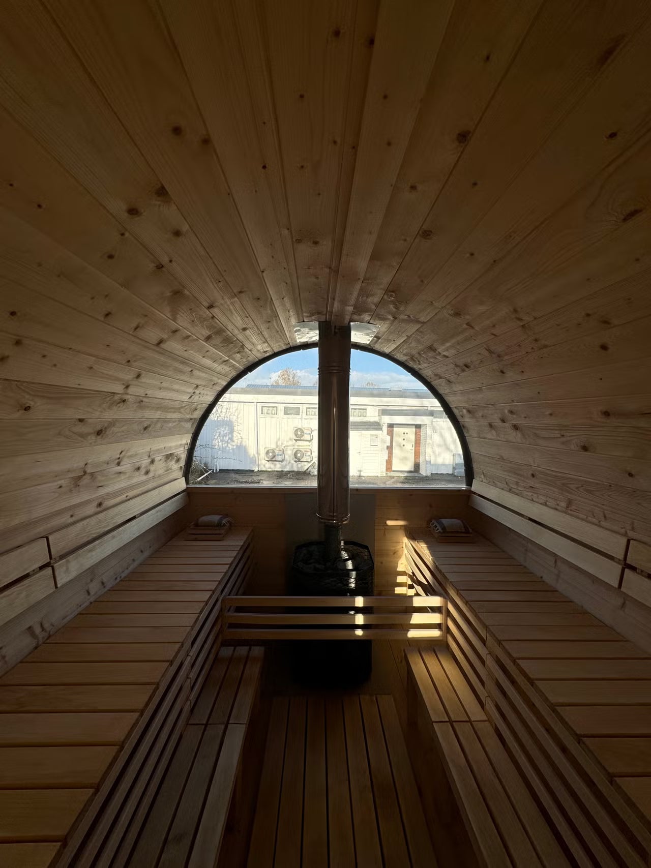 Fjordtønnen er en stilren og plassbesparende badstue, perfekt for hage eller hytte. Bygget med høykvalitetsmaterialer for optimal varmeisolasjon og holdbarhet.