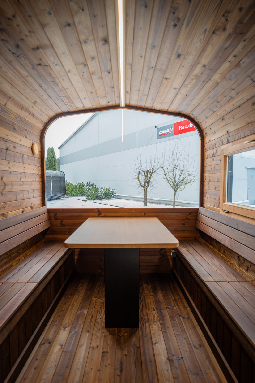 Fjordkube Premium er vår mest komplette kube, designet for maksimal komfort og velvære. Med stor L-formet badstue, lounge, omkledningsrom og integrert dusj, får du en fullverdig spa-opplevelse hjemme.