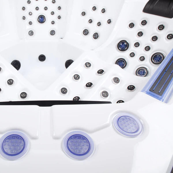 Spaet har sentralt RGB-lys og 14 belyste dyser som skaper en eksklusiv og stemningsfull atmosfære. MyMusic™ 2.0 leverer kraftig og klar lyd, tilpasset spa-bruk, og du kobler deg enkelt til via Bluetooth – helt uten behov for eksterne enheter.