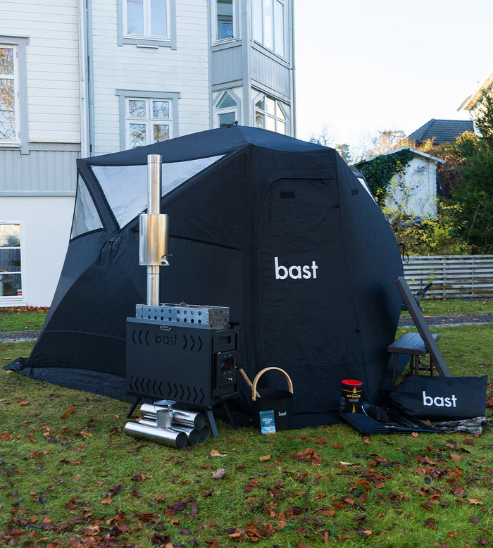 Bast Badstutelt er en stilren og plassbesparende badstuløsning, perfekt for hagen, hytta eller turer i naturen. Bygget med høy kvalitetsmaterialer for optimal varmeisolasjon og holdbarhet.