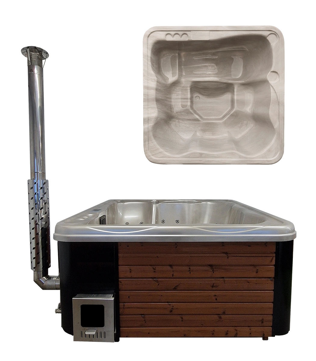 Nordstamp Monaco In er en kraftig og romslig badestamp med moderne design og integrert vedovn i rustfritt stål (S304). Den kvadratiske formen gir optimal komfort og gir plass til hele familien eller en vennegjeng.